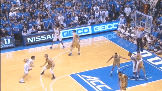 In the example above, we see Kevin Love accurately track the ball and time the jump to secure the rebound. After he secures the rebound, he shows excellent divergence by locating his open teammate streaking down the court. This sequence is an excellent display on how you can seamlessly switch between visual skills on the court to execute play-to-play.