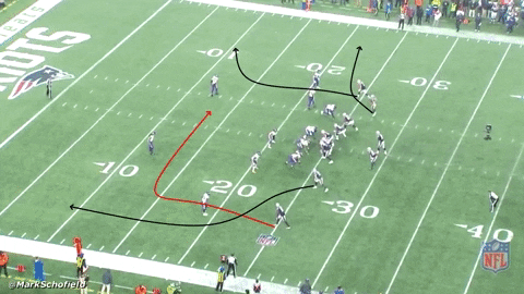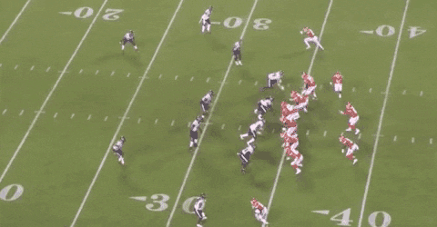 In the graphics above, you are looking at the Vizual Edge Contrast Tracking (Pursuits) exercise and an example of using pre-snap motion to identify coverage. The pursuit version of Contrast Tracking sees the circles moving in a smooth pattern, rather than jumping around. This offers a similar style of tracking when an offense does the pre-snap motion. The pre-snap motion above allows the QB to determine defensive players' responsibilities in coverage. The QB ultimately determines to check it down to the player in motion as the LB and DB both drop back in coverage.