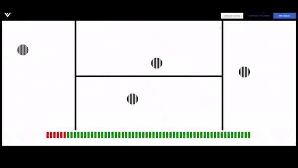 The contrast tracking exercise measures the ability to distinguish subtle light-dark differences in moving objects. By combining two of the most important visual skills in contrast and tracking, the contrast tracking exercises closely resemble a QB’s ability to read a defense both pre-snap and in-play.